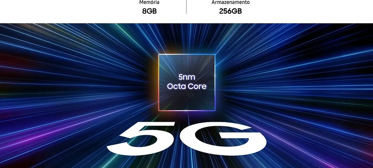 Faça tudo o que precisar com um poderoso processador Exynos 1280, 8 GB de memória e opções de armazenamento de 256 GB com suporte para um adicional de 1 TB com um cartão microSD. Tudo isso combinado com a velocidade do 5G.