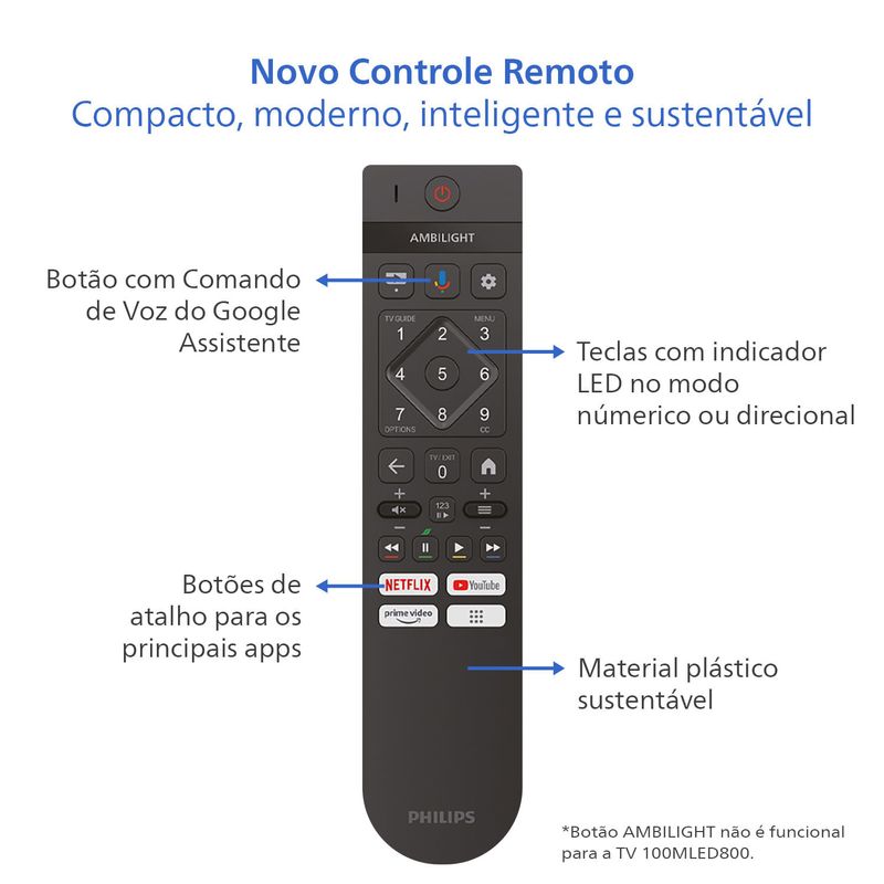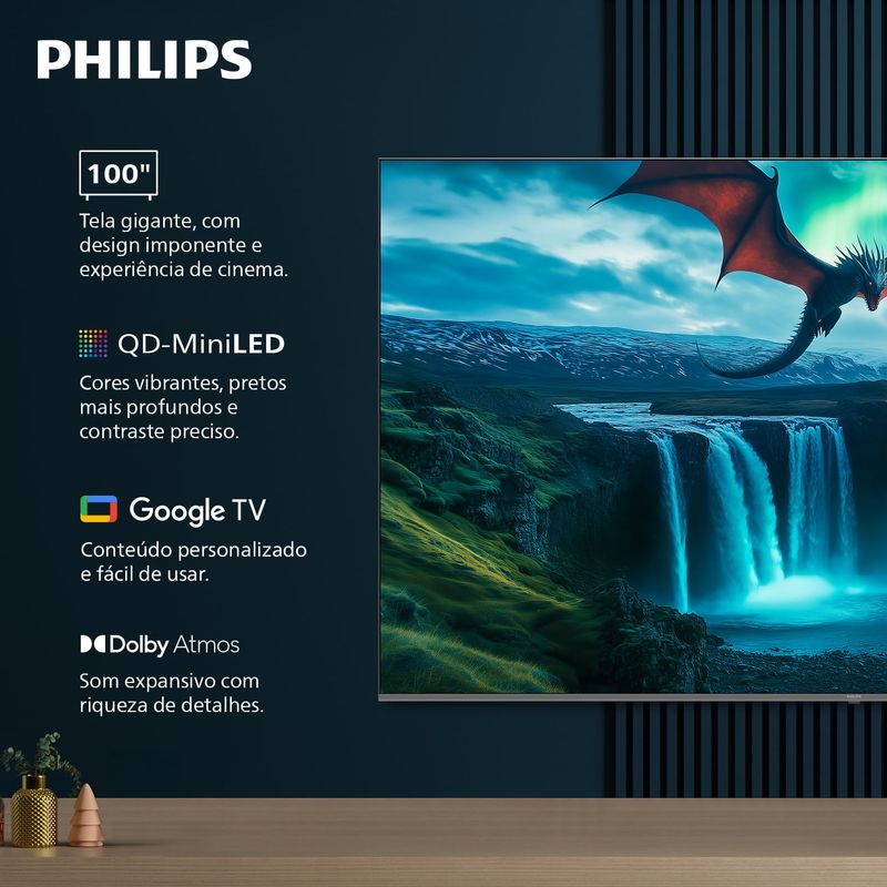 SmartTV Philips 100" Série QD-MiniLED 4K 100MLED800