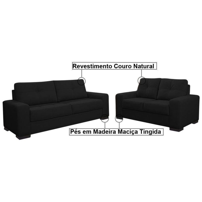 Sofá 2 e 3 Lugares Turim Couro Preto Fosco - Gran Belo é a grande novidade que veio com tudo para dar aquele UP na decoração do ambiente, fabricada por profissionais que se dedicaram em produzir o sofá perfeito, é ideal para acomodar a visita com aconchego e elegância, seu revestimento em couro garante total resistência e facilidade na hora da Limpeza. Aproveite está oportunidade e compre já em nossa loja, aqui a qualidade é garantida! Dimensões do Produto: