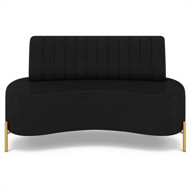 Sofá 2 Lugares 135cm Pés Aço Dourado Tamar Sintético Preto Z08 - Mpozenato