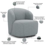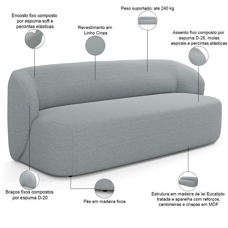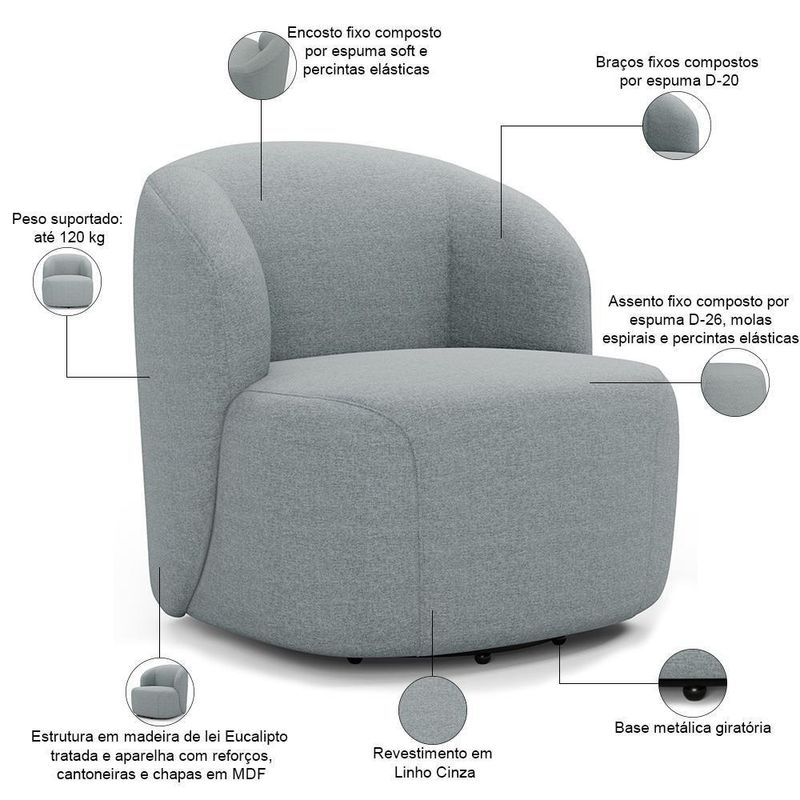 Sofá 2 Lugares 170cm Com Poltrona Giratória Orgânica Heidy F04 Linho Cinza - Lyam Decor