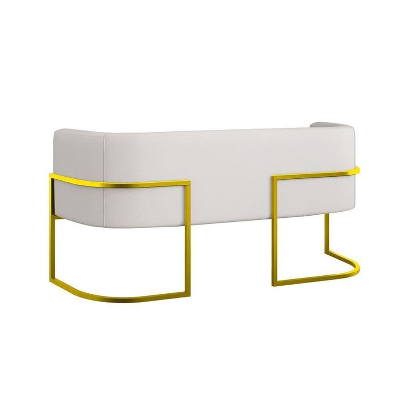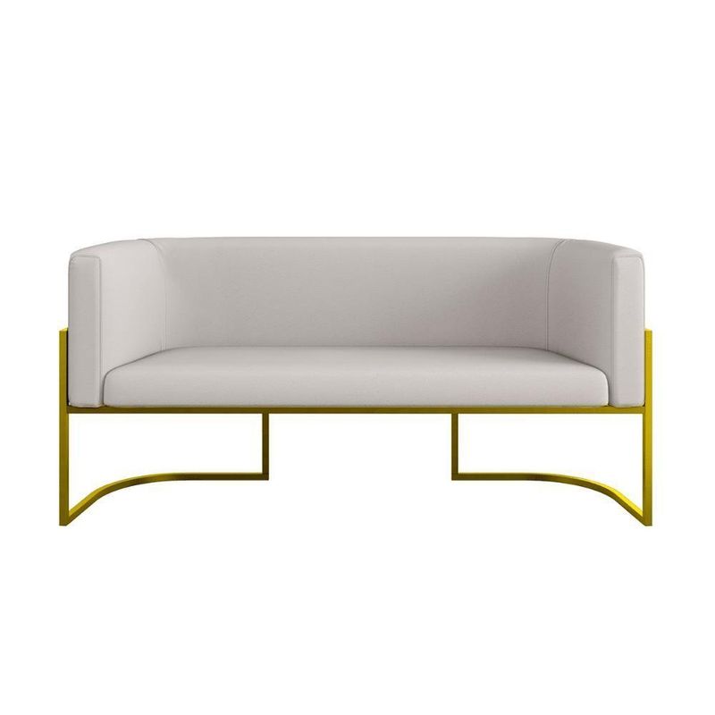 Sofá 2 Lugares Base Metal Dourada Reforçada Recepção Corino Cor:bege Bege
