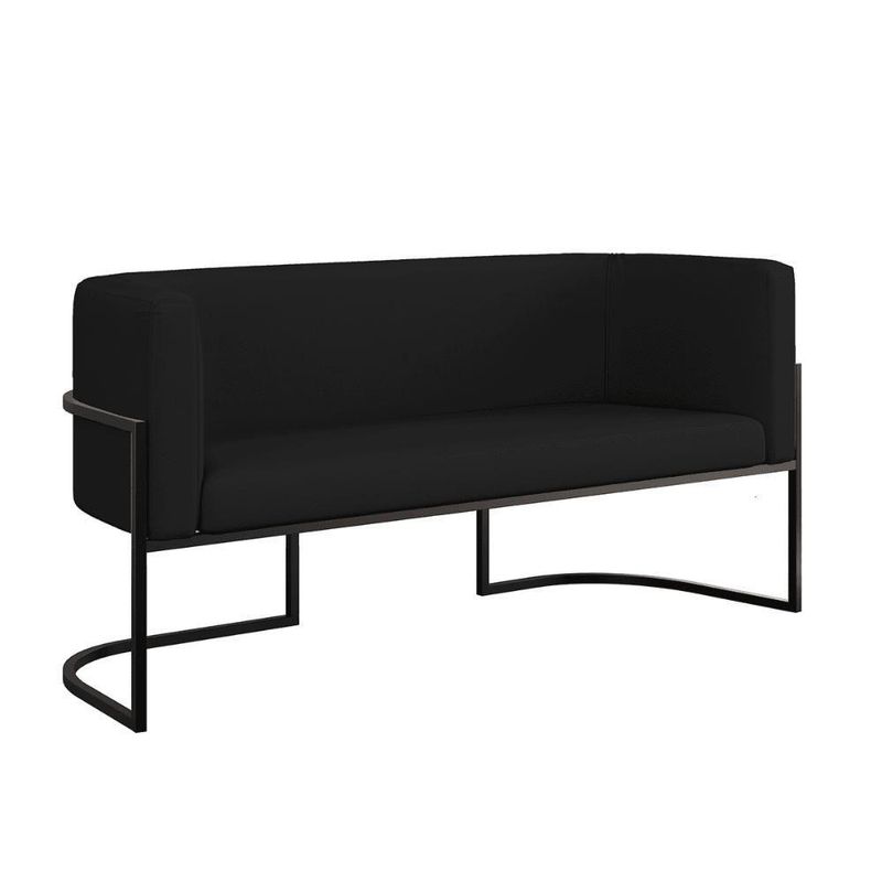 Sofá 2 Lugares Base Metal Preta Reforçada Recepção Corino Cor:preto Preto