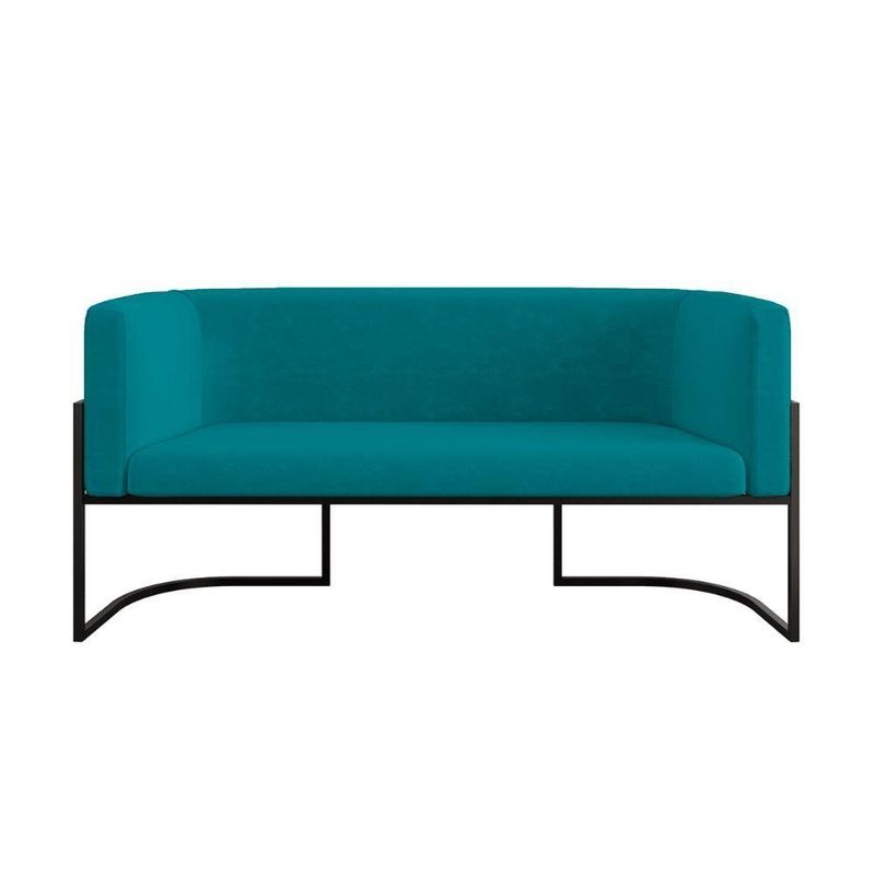 Sofá 2 Lugares Com Base De Metal Preto Reforçada Recepção Cor:azul Turquesa Azul Turquesa