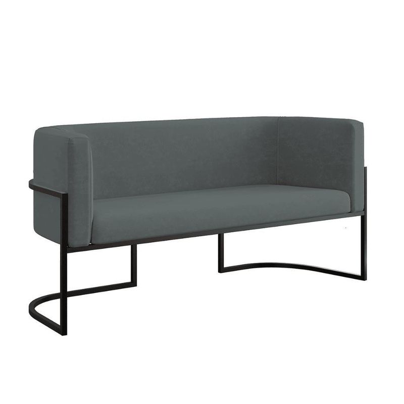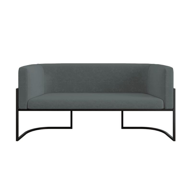Sofá 2 Lugares Com Base De Metal Preto Reforçada Recepção Cor:cinza Cinza