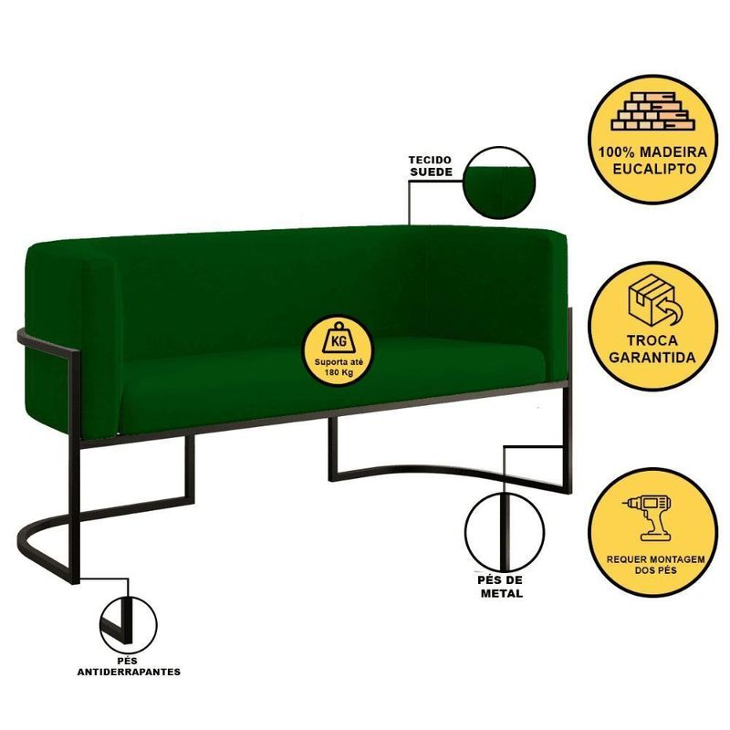 Sofá 2 Lugares Com Base De Metal Preto Reforçada Recepção Cor:verde Verde