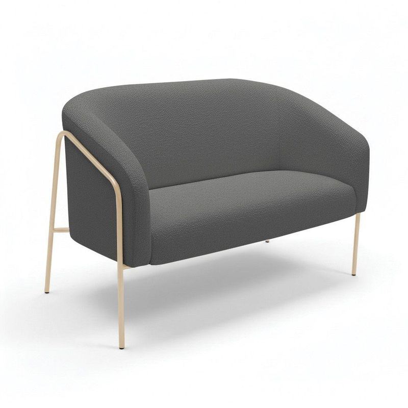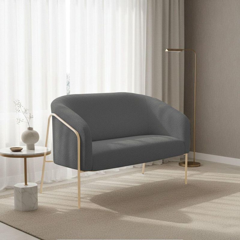 Sofá 2 Lugares Namoradeira Stella Base Industrial Alta Champanhe Bouclê Grafite D03 - D'rossi