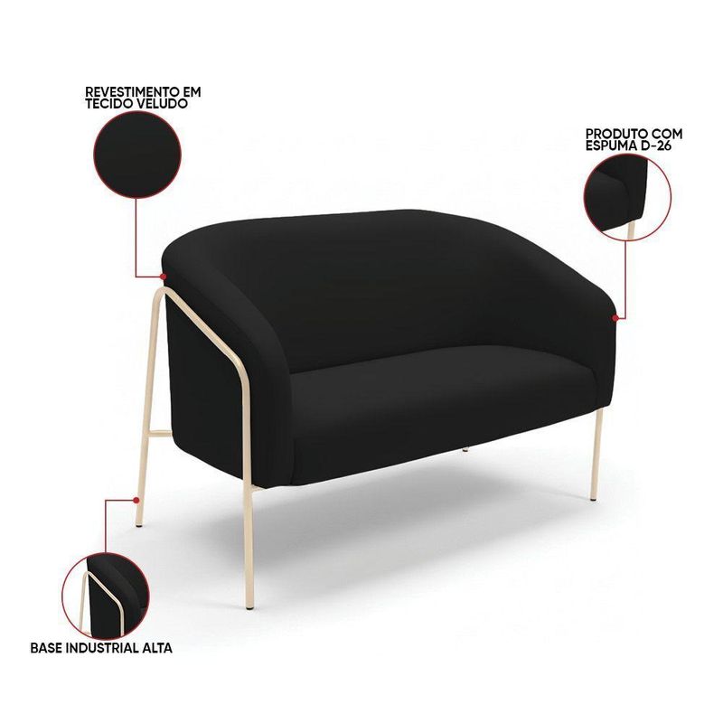 Sofá 2 Lugares Namoradeira Stella Base Industrial Alta Champanhe Veludo Preto D03 - D'rossi