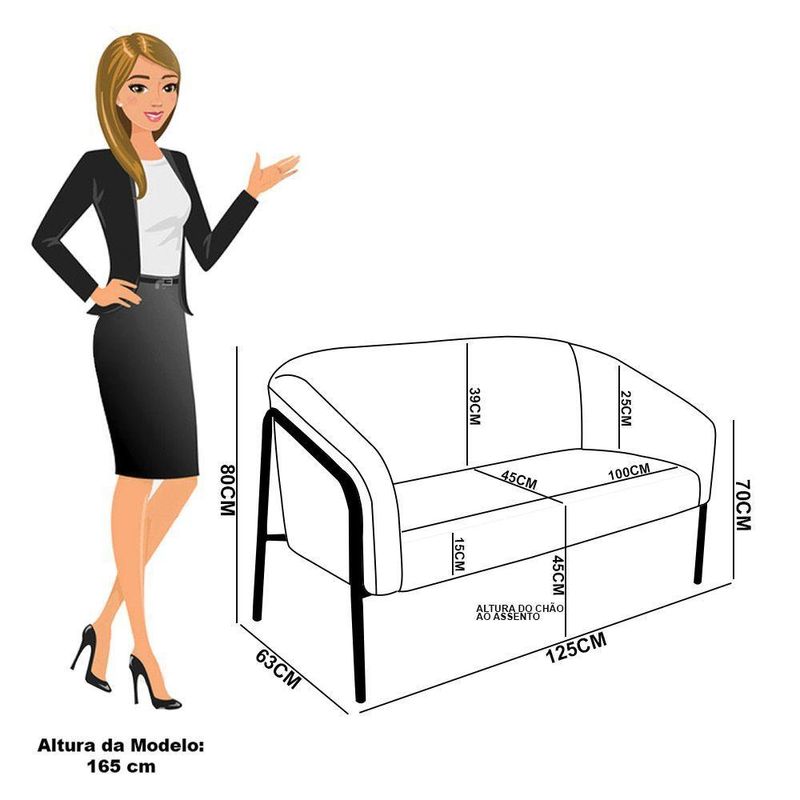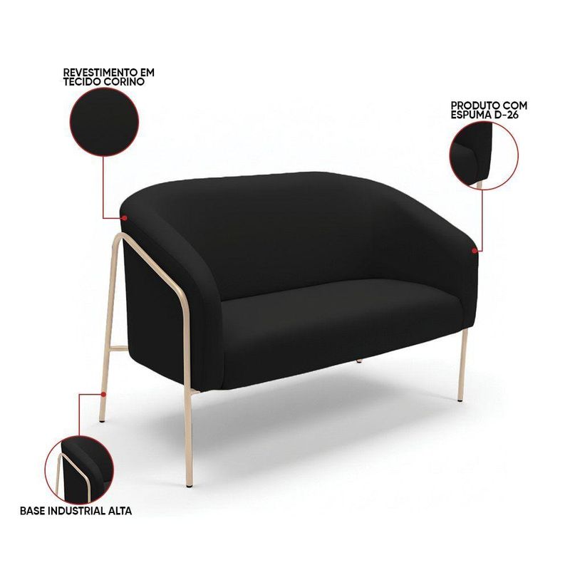 Sofá 2 Lugares Namoradeira Stella Industrial Alta Champanhe Sintético Preto D03 - D'rossi