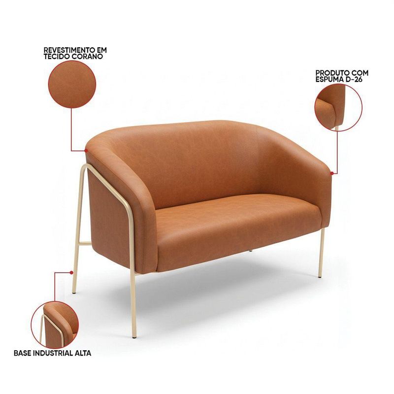 Sofá 2 Lugares Namoradeira Stella Industrial Alta Champanhe Sintético Pu Whisky D03 - D'rossi