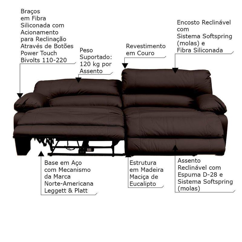 Sofá 2 Lugares Reclinável Elétrico Asmará 174cm Couro Gran Belo