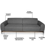 Sofá 210cm 3 Lugares Pés Preto Molino C-416 Linho Cinza Domi