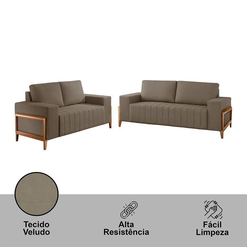 Sofá 2x3 Lugares Verona Meu Sofá Online B002 Veludo Capuccino