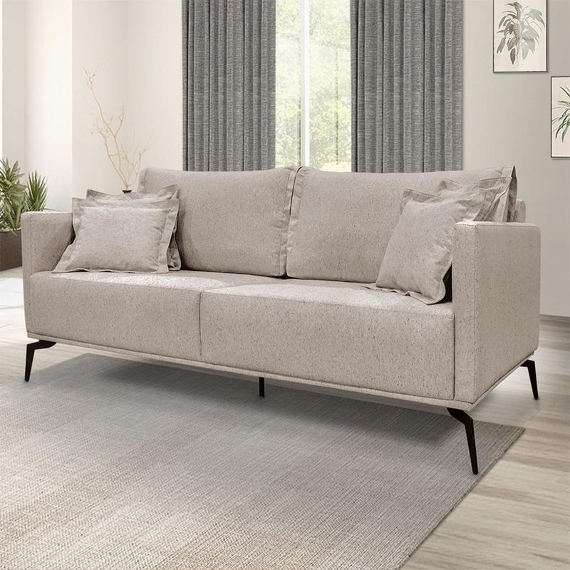 Sofá 3 Lugares 200cm Pés De Metal Vecchia S06 Linho Areia - Mpozenato