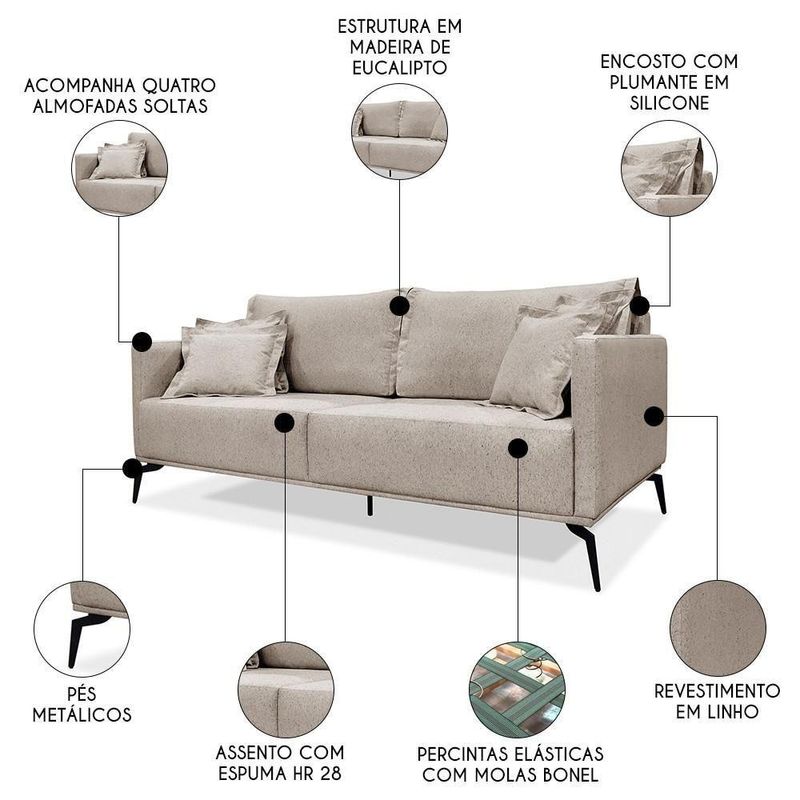 O Sofá 3 Lugares 200cm Pés de Metal Vecchia S06 Linho Areia, da Mpozenato é uma escolha excelente para quem procura conforto, qualidade e design contemporâneo.