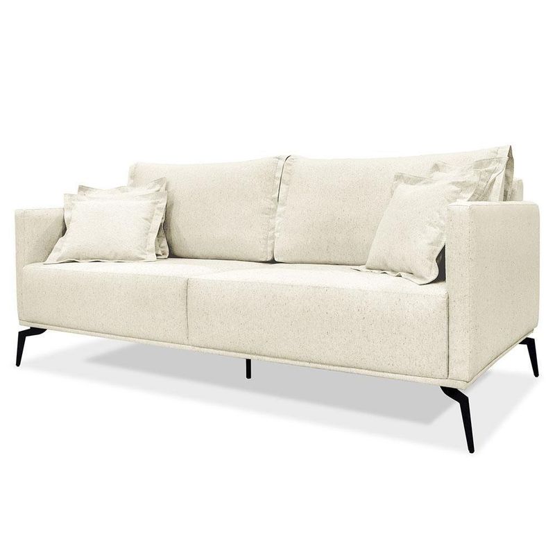 Sofá 3 Lugares 220cm Pés De Metal Vecchia S06 Linho Natural - Mpozenato