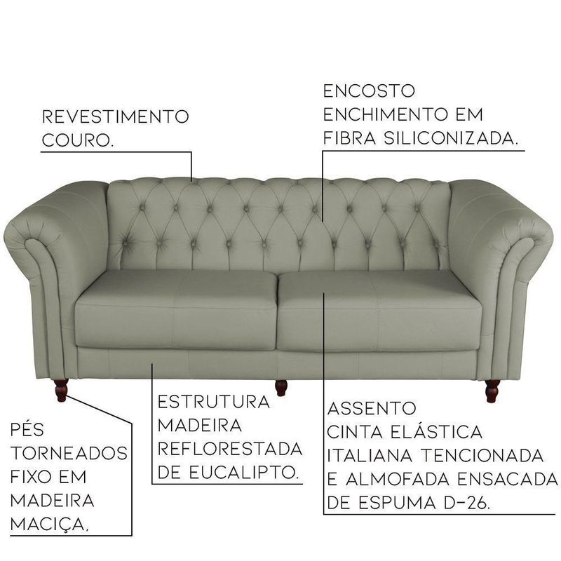 Sofá 3 Lugares 240cm Couro Fendi Gran Belo