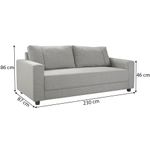 Dimensões: Tamanho (AxLxP): 85 x 230 x 87 cm; Tamanho individual do braço: 12cm Distancia chão e assento: 46 cm; Peso: 40 Kg.