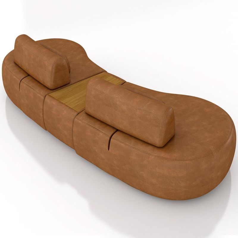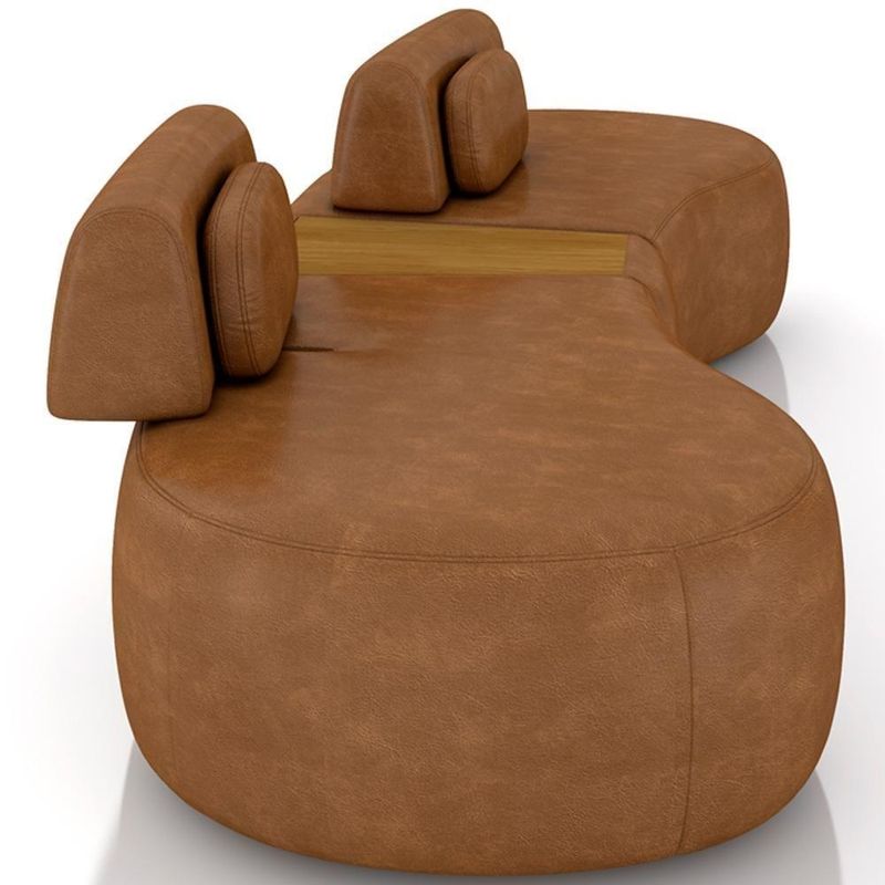 Sofá 4 Lugares Orgânico Para Sala Living Com Puff 342cm Vasti M03 Couríssimo Whisky - Lyam Decor