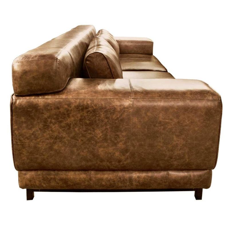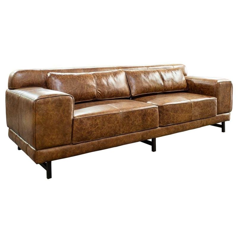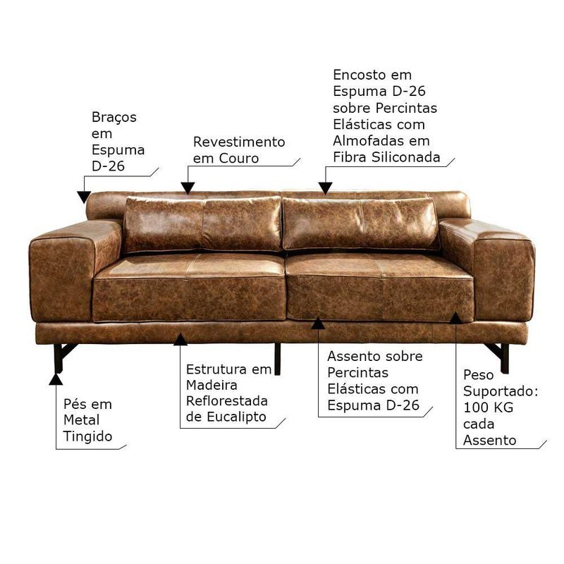 Sofá 4 Lugares Sala de Estar Malta 260cm Mel Couro - Gran Belo produto fabricado com 100% couro, ideal para decorar ambientes sofisticados e aproveitar o conforto proporcionado pelo sofá Malta, feito com materiais de alta qualidade e modernidade por conta do seu pé em metal. Aproveite agora e leve já o seu!