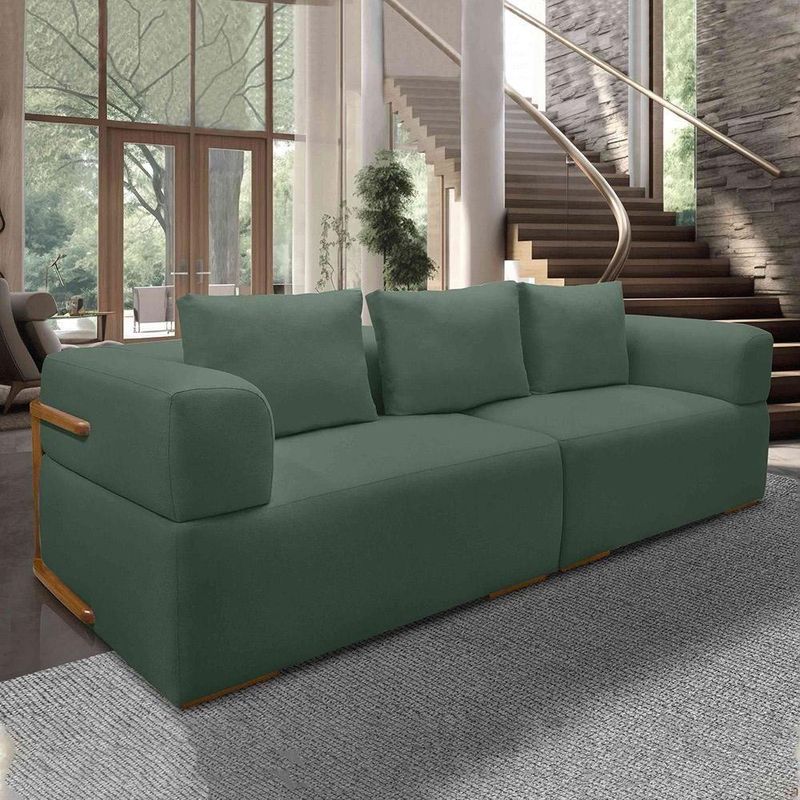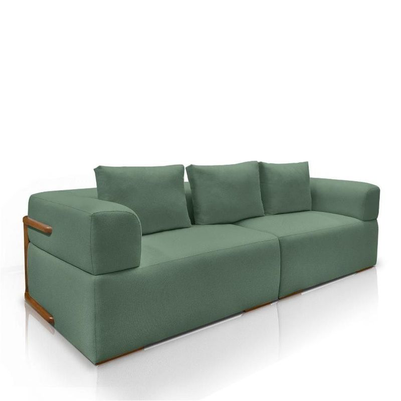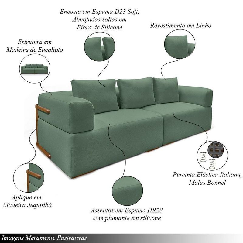 Sofá Bipartido 5 Lugares Com Almofadas Soltas 300cm Nuuk Linho Verde G63 - Gran Belo