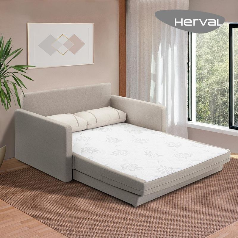 SOFÁ-CAMA CASAL 2 LUGARES HERVAL AURORA, LINHO BEGE