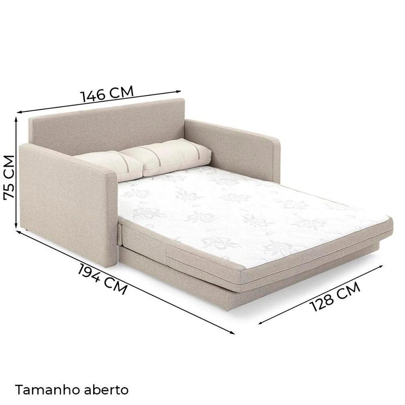 DIMENSÕES Tamanho do produto fechado (AxLxP): 88 x 146 x 102 cm Tamanho do produto aberto (AxLxP):?88?x 146 x 194 cm Tamanho Colchão (AxLxP): 13 x 128 x 188 cm Peso total do produto: 53 kg