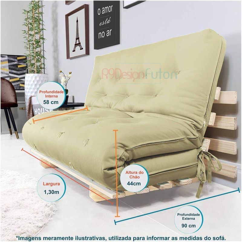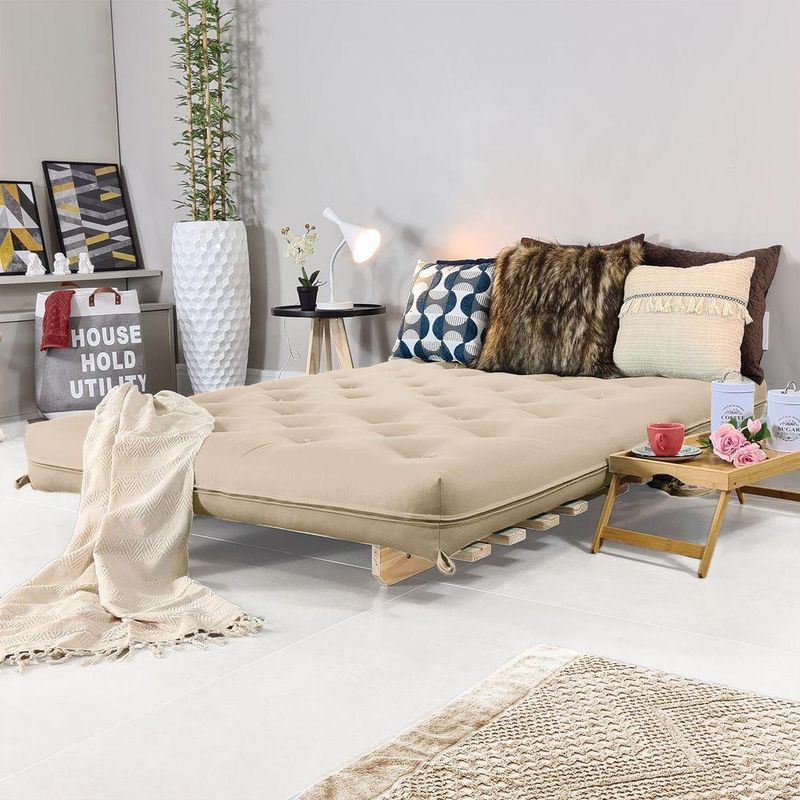 Sofa Cama Casal Futon Oriental Bege Madeira Maciça