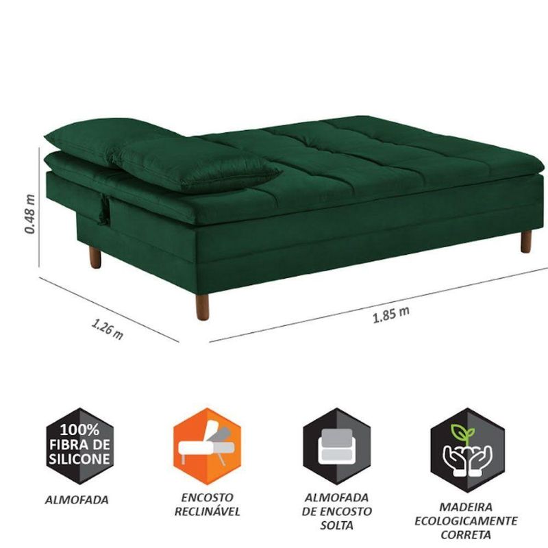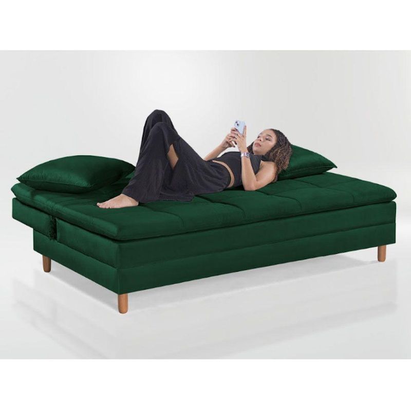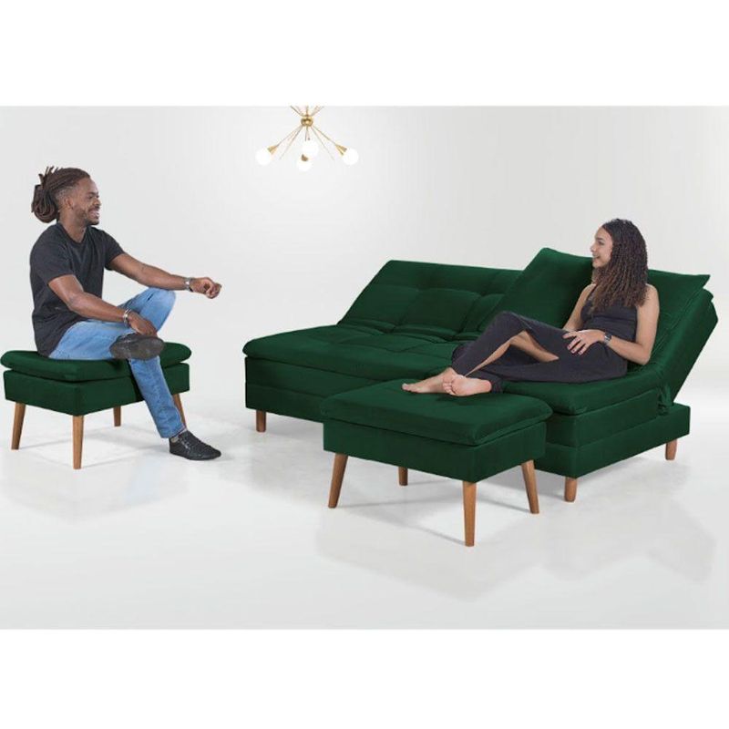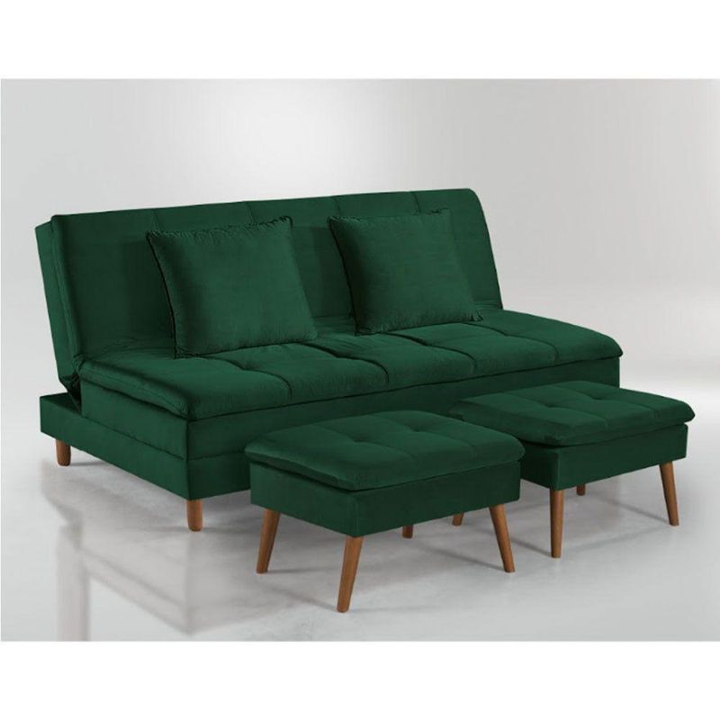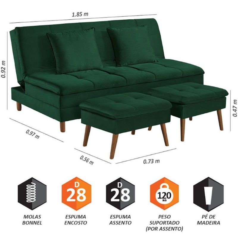 Sofá Cama Vegas Com 2 Puffs E Pé De Madeira Talento Móveis Verde