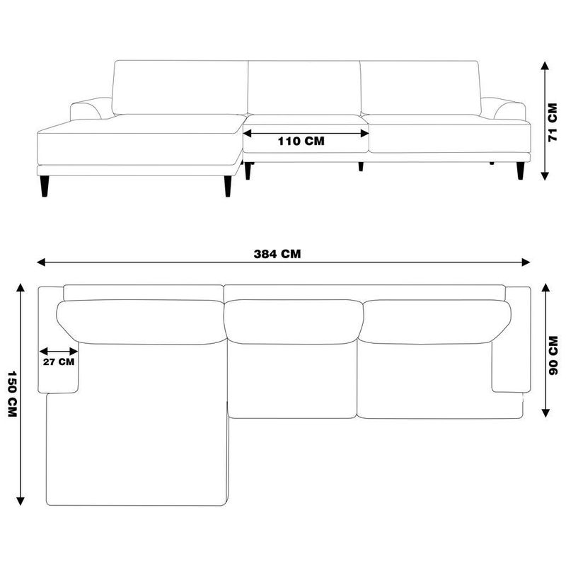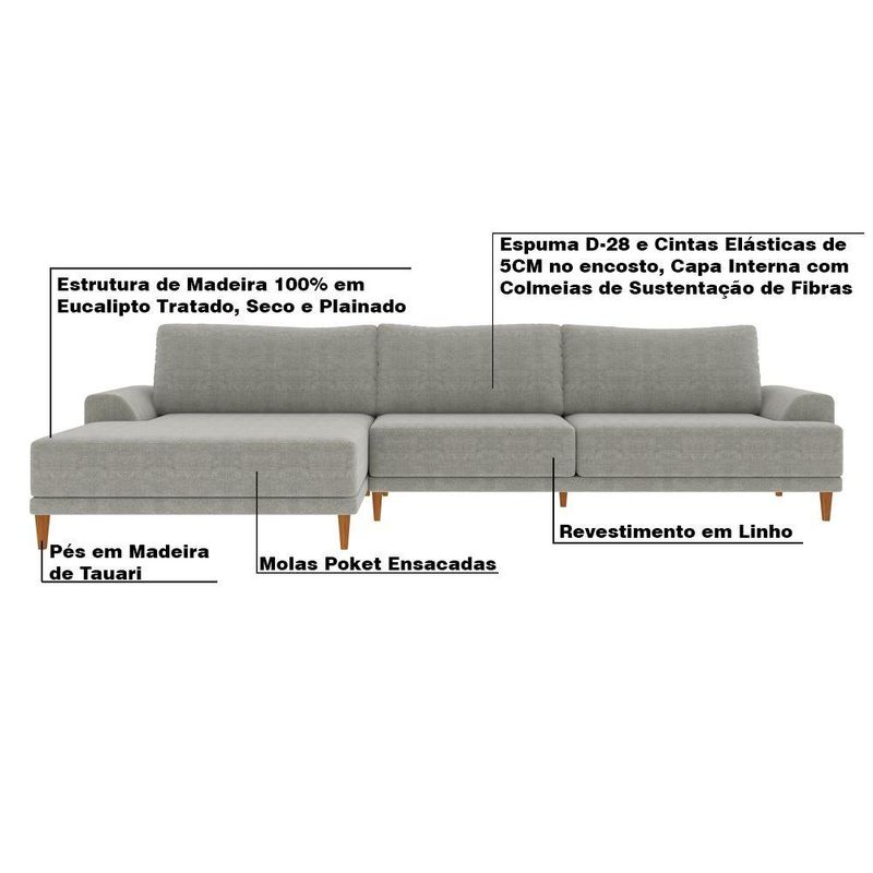 Sofá com Chaise Esquerda 384cm índico Linho Cinza Gran Belo