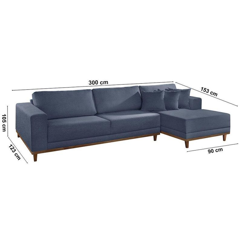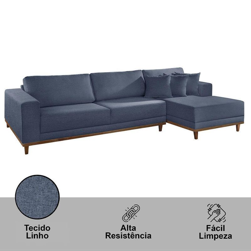 Sofá Cronos 03 Metros Chaise Lado Direito Meu Sofá Online A259 Linho Azul