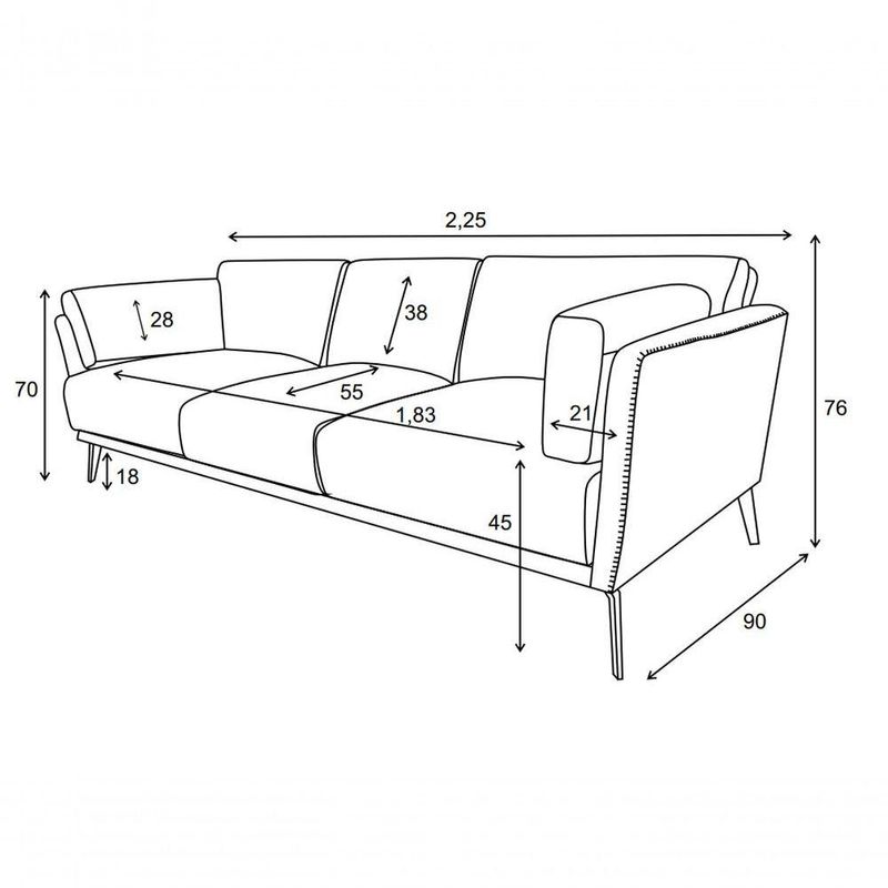 Dimensões do produto: 2,25 m x 0,90 m 0,76 m (CxPxA)Dimensões da embalagem: 1 volume 2,28 m x 0,94 m x 0,79 m (CxPxA)