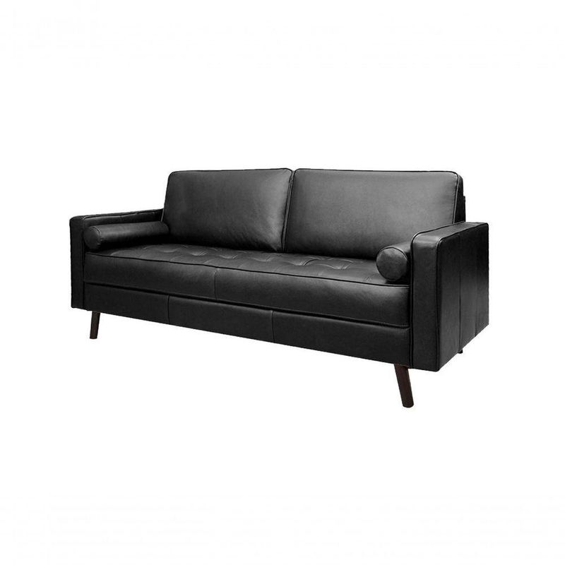 Sofá De Couro Melfi 4 Lugares Preto Pigmentado - Mempra