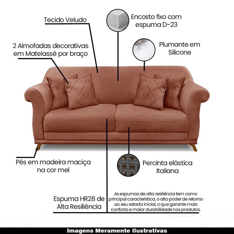 MóveisSofásSofá Decorativo 160cm 2 Lugares com 4 Almofadas Armstrong Veludo Cobre G63 - Gran Belo