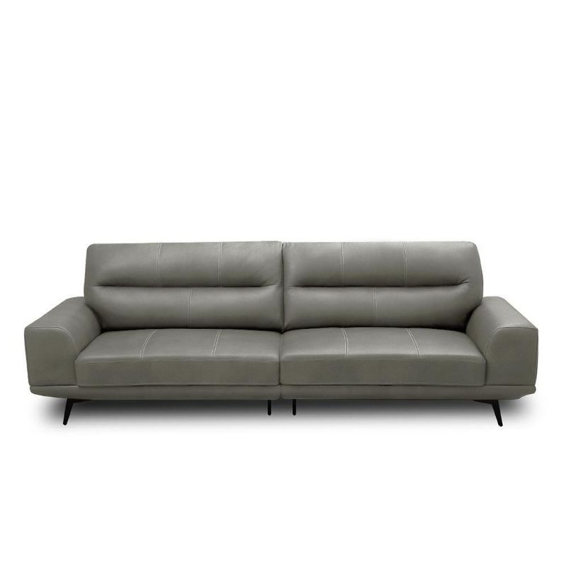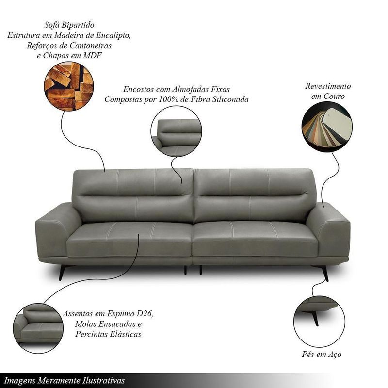 Sofá Decorativo Ashton 3 Lugares Sala De Estar 236cm Pés Em Aço Couro Grafite G88 - Gran Belo