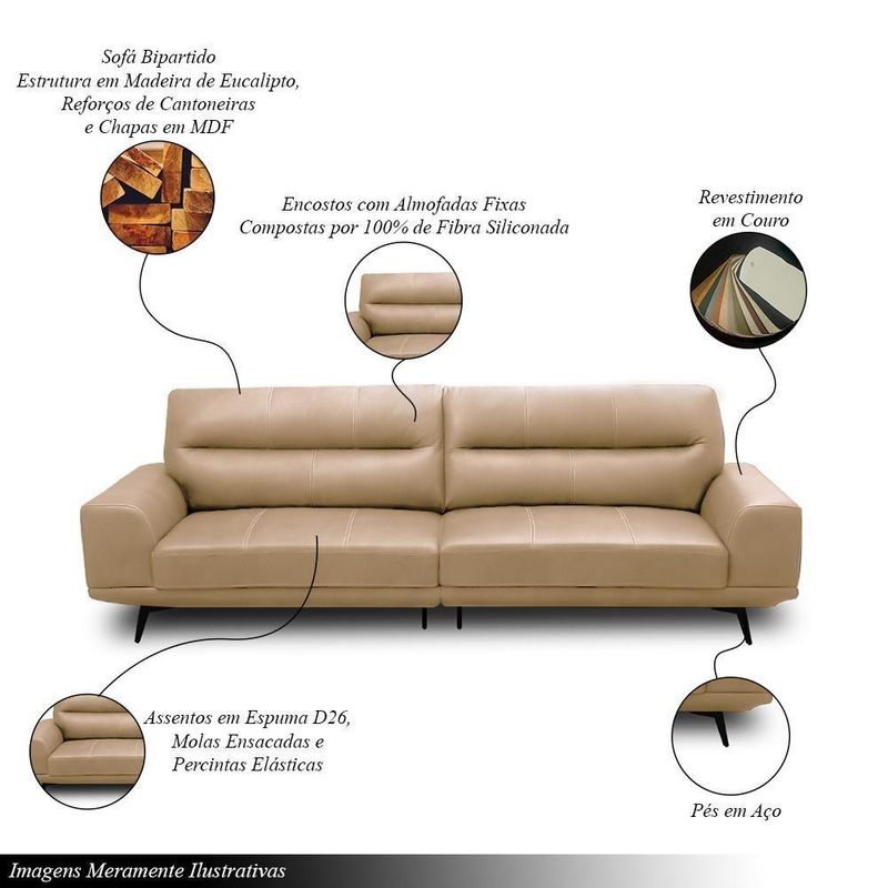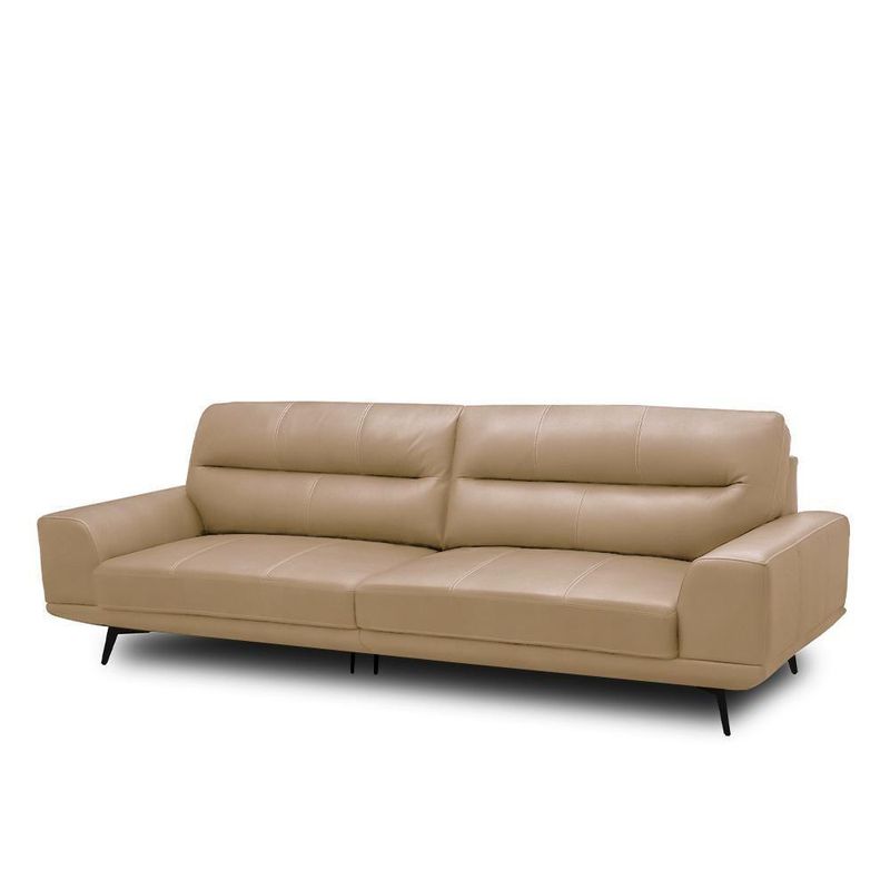 Sofá Decorativo Ashton 3 Lugares Sala De Estar 256cm Pés Em Aço Couro Nude G88 - Gran Belo