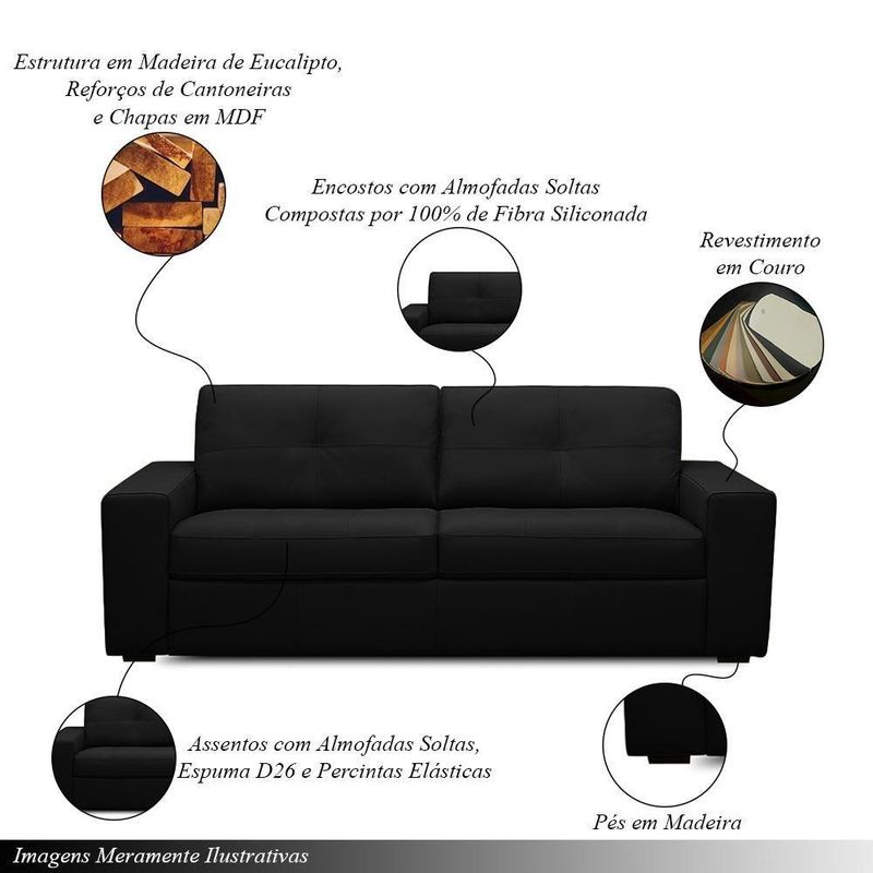 Sofá Decorativo Mendes 2 Lugares Sala De Estar 150cm Pés Em Madeira Couro Preto G88 - Gran Belo
