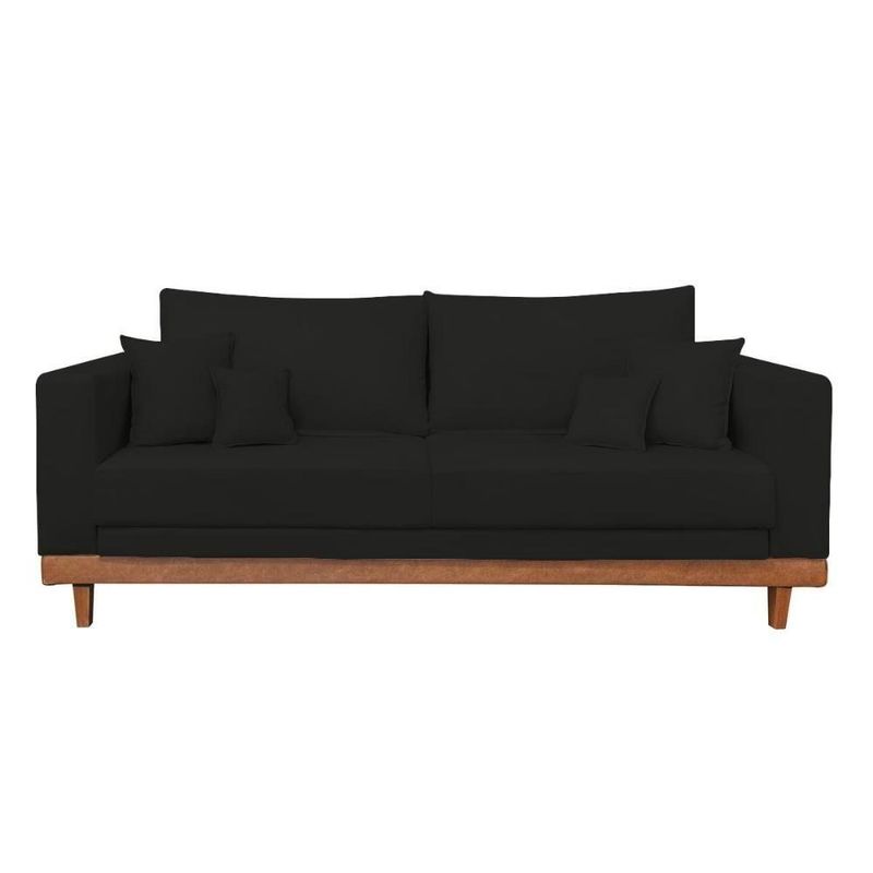 Sofá Living 2 Lugares Suede Resistente Madeira + Almofadas Cor:preto Preto