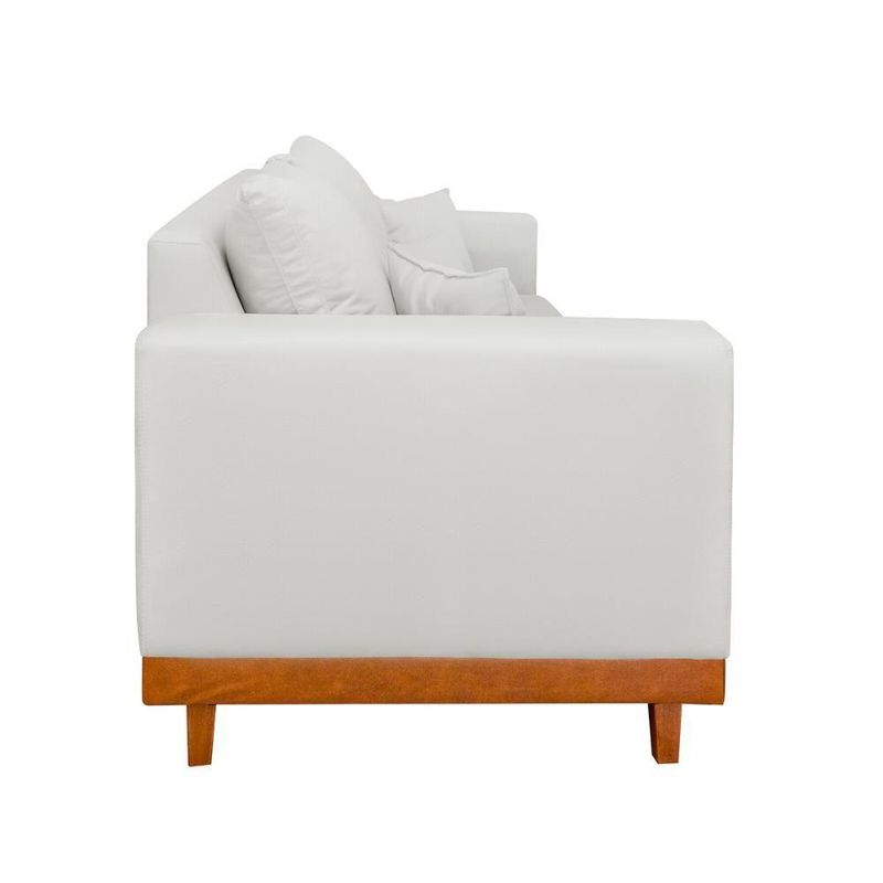 Sofá Living 3 Lugares Linho Resistente Madeira + Almofadas Cor:bege Bege