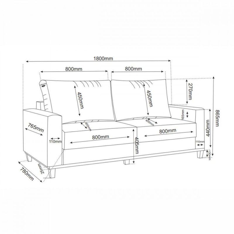 Altura (com pes): 86 cm | Largura: 181 cm | Profundidade: 76 cm