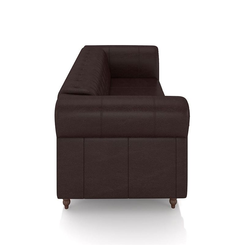 Transforme sua sala de estar com o Sofá Stanford Estilo Chesterfield, uma peça icônica que combina sofisticação e conforto em um design atemporal. Este elegante sofá é a escolha perfeita para quem busca não apenas um móvel, mas uma verdadeira obra de arte para o ambiente.Fabricado com madeira reflorestada de eucalipto, o Sofá Stanford garante durabilidade e resistência, respeitando o meio ambiente ao mesmo tempo.O encosto e os braços são preenchidos com fibra siliconada, oferecendo um toque macio e aconchegante, enquanto o assento é equipado com cinta elástica italiana tensionada e almofada ensacada de espuma D-26. Esta combinação proporciona um suporte excepcional e conforto duradouro.O revestimento em couro confere um aspecto luxuoso e elegante, refletindo o estilo clássico Chesterfield. Seus pés torneados fixos, em madeira maciça, adicionam um charme adicional e garantem estabilidade.Com a impressionante capacidade de suportar até 240 kg, o Sofá Stanford é ideal para uso diário e acomoda confortavelmente todos os membros da família.Este sofá é a escolha ideal para quem aprecia o charme vintage e a qualidade superior dos móveis. Com seu design imponente e detalhes refinados, o Sofá Stanford Estilo Chesterfield será o ponto focal de qualquer sala de estar, oferecendo um ambiente elegante e acolhedor.