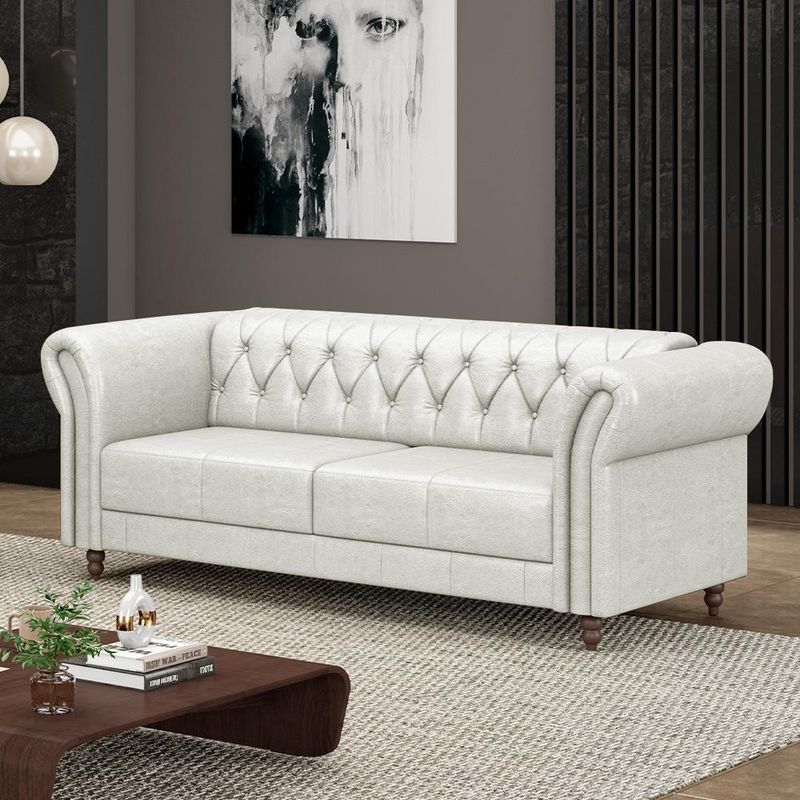 MóveisSofásSofá Living Sala de Estar Stanford Chesterfield 2 Lugares 220cm Pés de Madeira Couro Branco Manchado G58 - Gran Belo