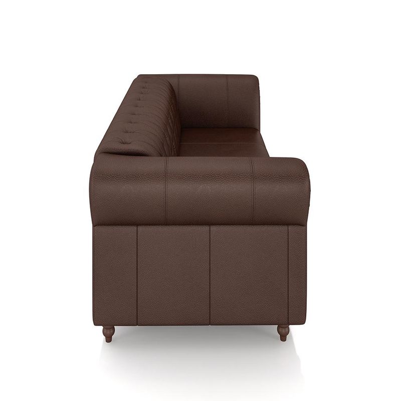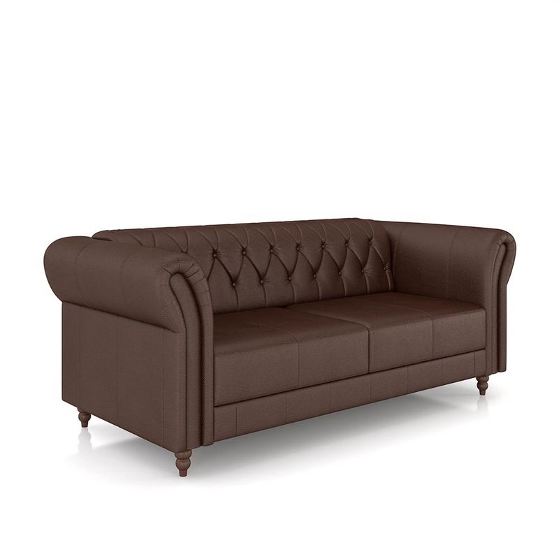 Transforme sua sala de estar com o Sofá Stanford Estilo Chesterfield, uma peça icônica que combina sofisticação e conforto em um design atemporal. Este elegante sofá é a escolha perfeita para quem busca não apenas um móvel, mas uma verdadeira obra de arte para o ambiente.Fabricado com madeira reflorestada de eucalipto, o Sofá Stanford garante durabilidade e resistência, respeitando o meio ambiente ao mesmo tempo.O encosto e os braços são preenchidos com fibra siliconada, oferecendo um toque macio e aconchegante, enquanto o assento é equipado com cinta elástica italiana tensionada e almofada ensacada de espuma D-26. Esta combinação proporciona um suporte excepcional e conforto duradouro.O revestimento em couro confere um aspecto luxuoso e elegante, refletindo o estilo clássico Chesterfield. Seus pés torneados fixos, em madeira maciça, adicionam um charme adicional e garantem estabilidade.Com a impressionante capacidade de suportar até 240 kg, o Sofá Stanford é ideal para uso diário e acomoda confortavelmente todos os membros da família.Este sofá é a escolha ideal para quem aprecia o charme vintage e a qualidade superior dos móveis. Com seu design imponente e detalhes refinados, o Sofá Stanford Estilo Chesterfield será o ponto focal de qualquer sala de estar, oferecendo um ambiente elegante e acolhedor.