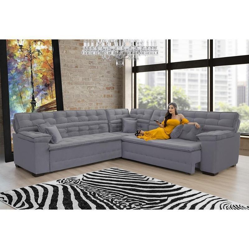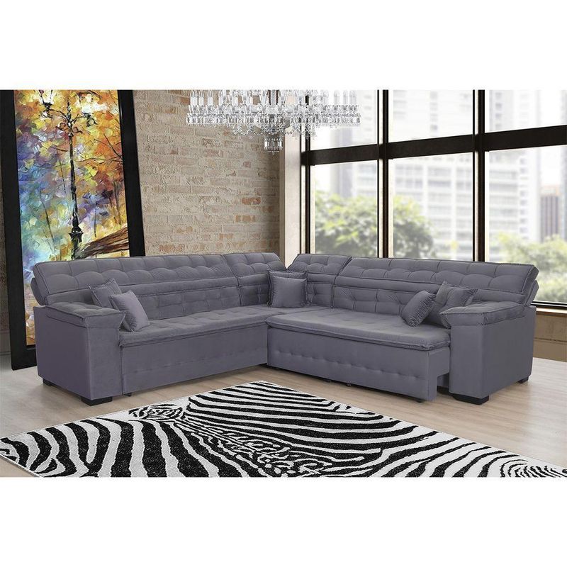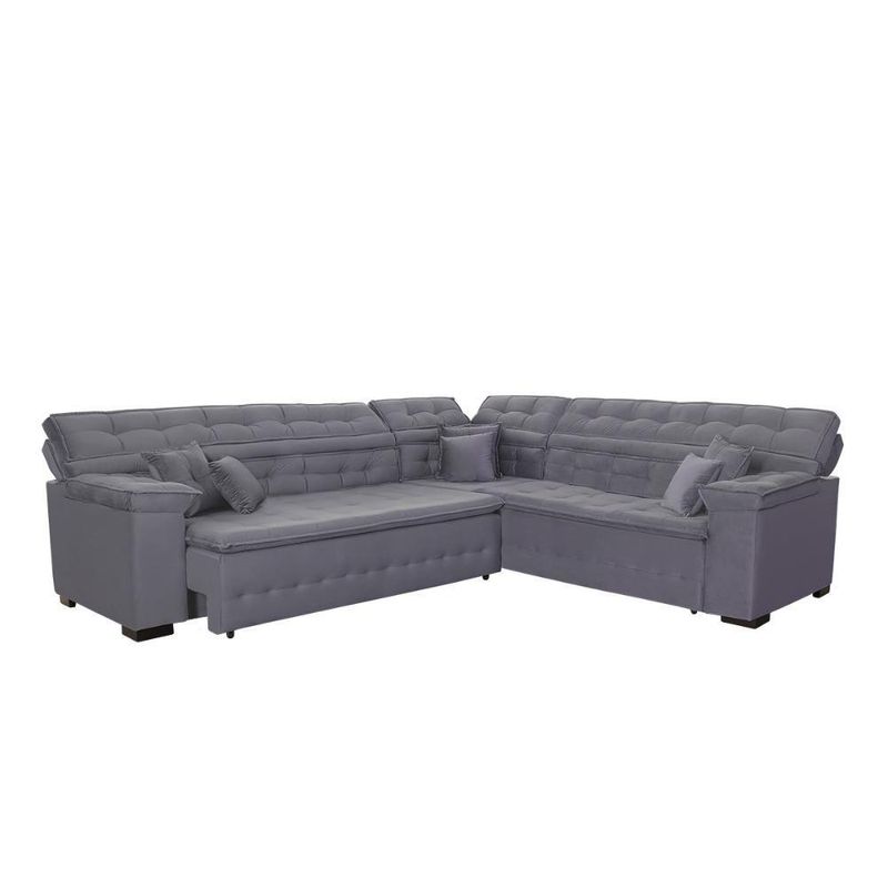 Sofá Magno 2.57x2.37m De Canto, Retrátil E Reclinável Chumbo