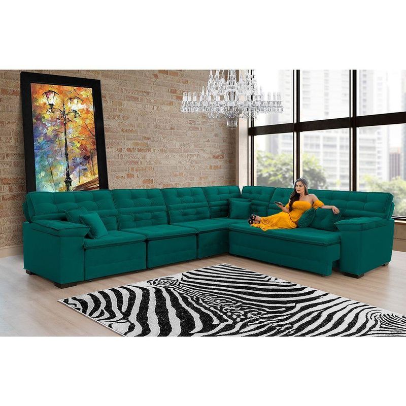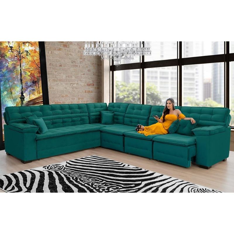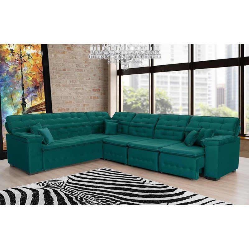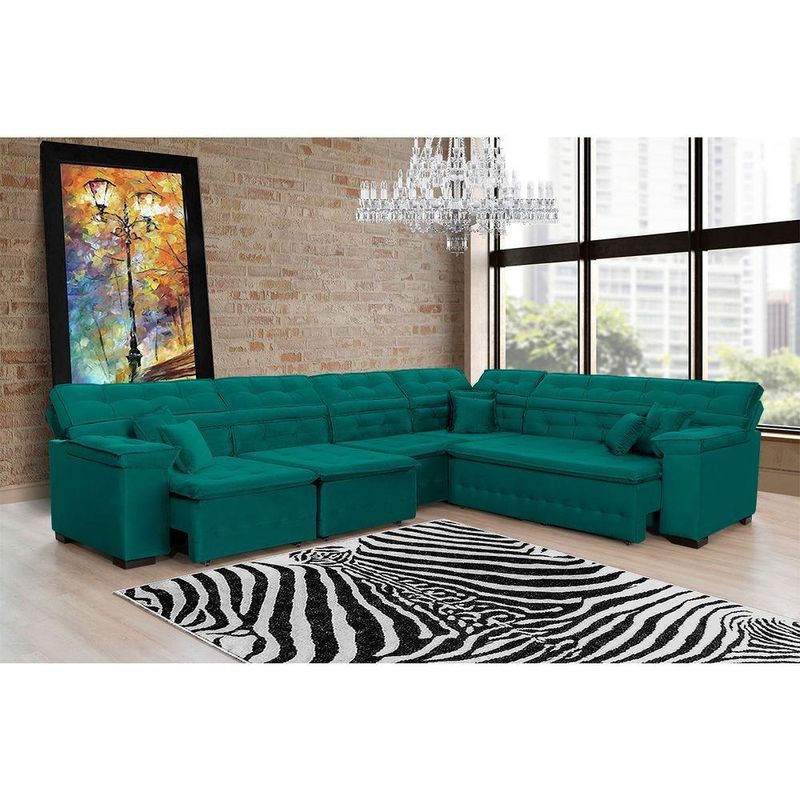 Sofá Magno 3.77x2.37m De Canto, Retrátil E Reclinável Verde