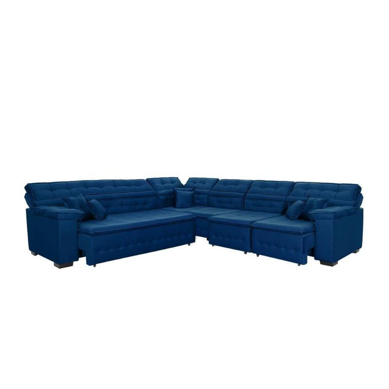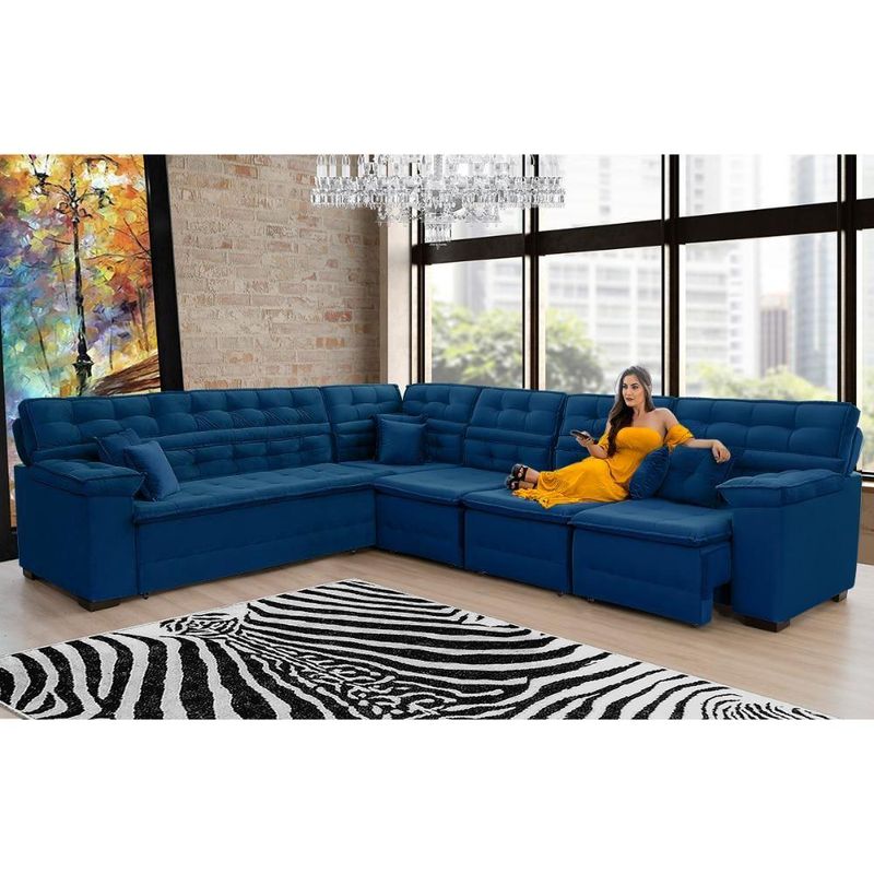 Sofá Magno 3.97x2.37m De Canto, Retrátil E Reclinável Azul