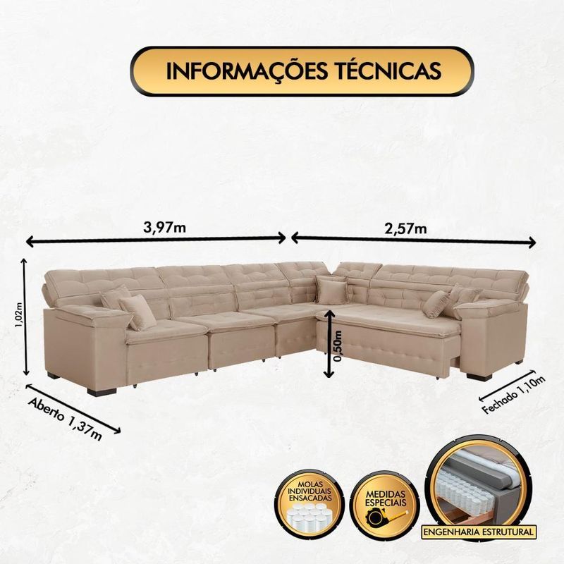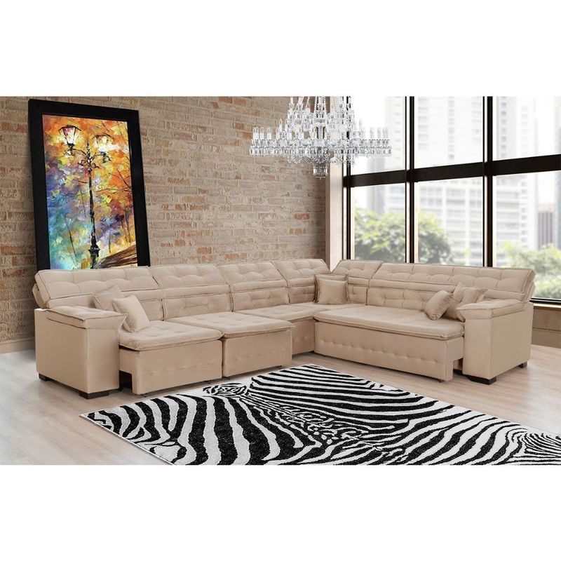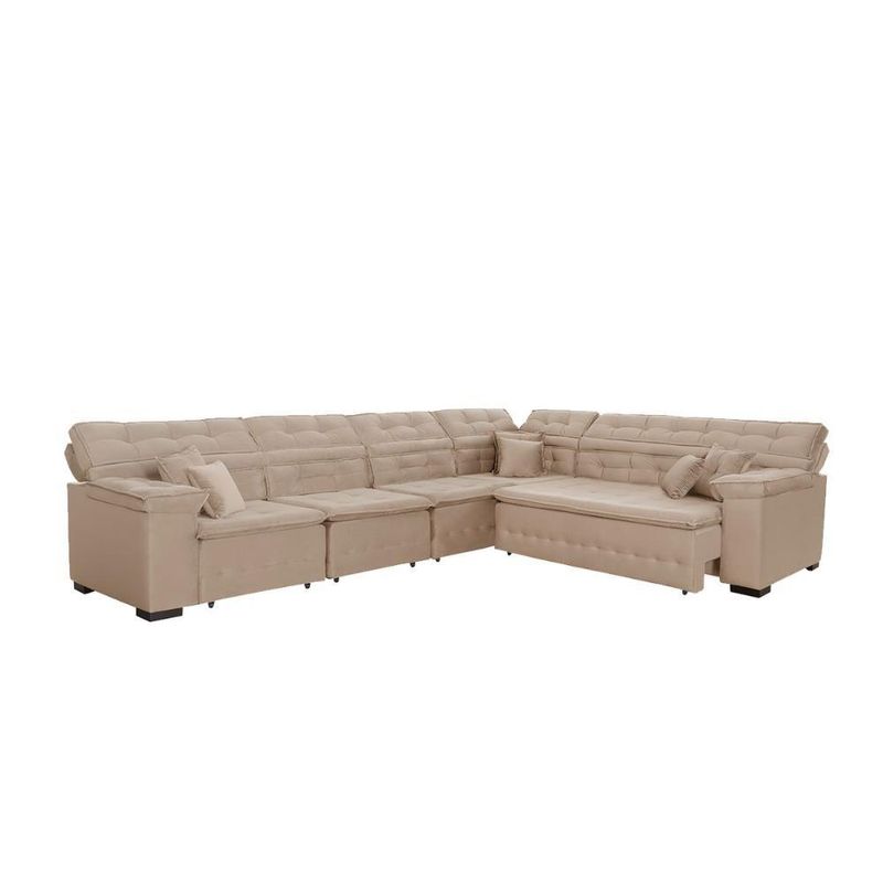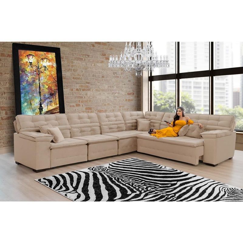 Sofá Magno 3.97x2.57m De Canto, Retrátil E Reclinável Bege