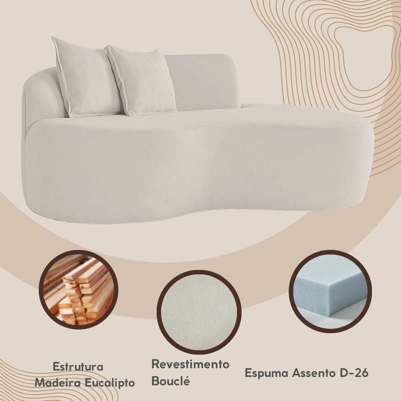 Sofá Orgânico : Design Escultural, Visual Suave e Conforto que Abraça.Imagine entrar no ambiente e encontrar um sofá que, antes mesmo de sentar, já transmite acolhimento. Suas curvas contínuas criam uma sensação imediata de suavidade, enquanto o revestimento texturizado adiciona profundidade e elegância ao visual.O Sofá Orgânico foi criado exatamente para isso: ser um ponto de destaque natural, sem exageros, unindo forma e conforto em um único conceito.Com presença marcante e desenho fluido, ele combina perfeitamente com salas modernas, espaços minimalistas, ambientes comerciais sofisticados e projetos que valorizam mobiliário com assinatura. Suas linhas generosas permitem que a peça se integre ao espaço com harmonia, criando uma atmosfera leve e contemporânea.A espuma de alta densidade proporciona conforto imediato, mantendo o visual sempre bonito e bem estruturado. O toque macio do tecido bouclé completa a experiência, tornando o Sofá Orgânico ideal para momentos de descanso e recepção de convidados.Seu design transforma qualquer ambiente em um espaço mais convidativo e sofisticado.Além da estética marcante, o sofá oferece durabilidade para uso diário sem perder o charme, o Sofá Orgânico é a escolha perfeita para quem busca personalidade, conforto e elegância em uma única peça.ESPECIFICAÇÕES:Estrutura interna reforçada em madeira de eucaliptoRevestimento texturizado BoucléEspuma de alta densidade D-26Formato contínuo e curvilíneoDIMENSÕES:Altura: 76 cmLargura:145 cmProfundidade: 86 cmDo chão até o assento: 45 cmAltura do Encosto: 28 cmProfundidade do assento: 50 e 58 cm conforme o contorno orgânico do sofáPeso: 28 kgSuporta até: 170 kgMONTAGEM:O produto vai montadoProduto vai embalado na caixaGARANTIA DE FÁBRICA:cada peça passa por uma curadoria rigorosa que assegura beleza, qualidade e durabilidade. Caso algum produto apresente defeito de fabricação dentro de 90 dias após a entrega, nosso suporte atencioso e altamente profissional estará pronto para atender você com agilidade e eficiência.Aqui, garantir sua tranquilidade é parte do nosso padrão de excelência.CUIDADOS E LIMPEZA:Utilize um pano limpo e levemente úmido, indicado para ambientes internos, evite exposição direta ao sol, calor excessivo e umidade.INFORMAÇÕES IMPORTANTES:Pode haver diferença entre a imagem e o produto real devido a tratamento de imagens e calibração do monitorNão garantimos a mesma cor para futuras compras devido à variação em lotes de tecido.Não inclui objetos de decoração e eletros.Confira as medidas para garantir que o produto passe por escadas, elevadores e portas.