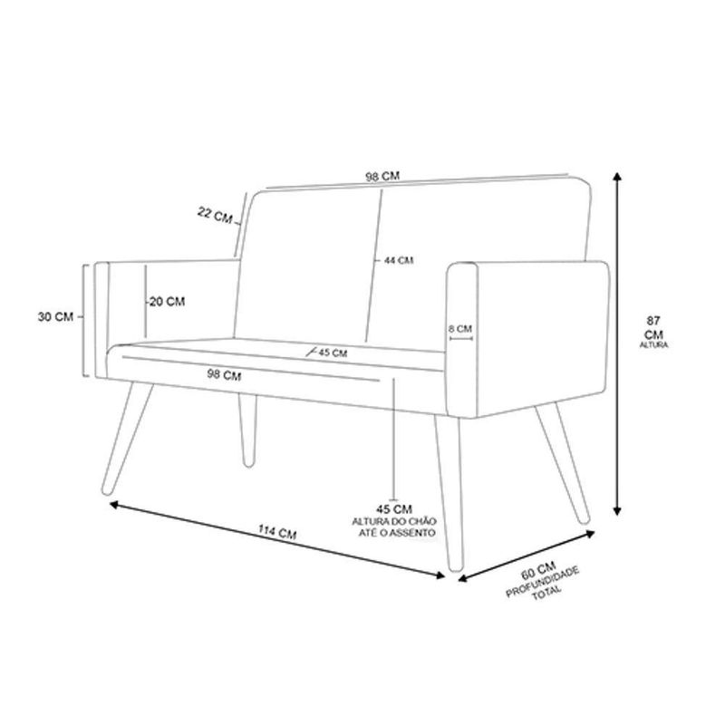 Espuma acento e braços com densidade D-26, e encosto com densidade D-23;