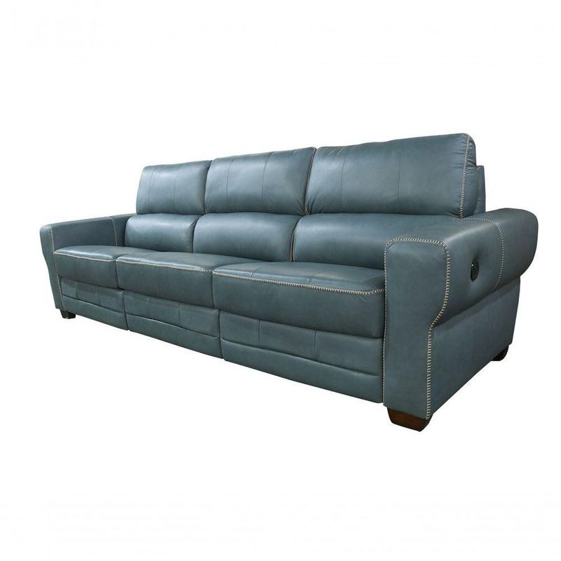 Sofá Reclinável De Couro Lisboa 3 Lugares Couro Turquese Mempra